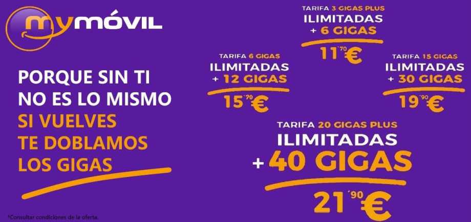 No dejes escapar la oferta, esta especialmente dirigida a ti, nos gustaria que volvieses con MyMovil.